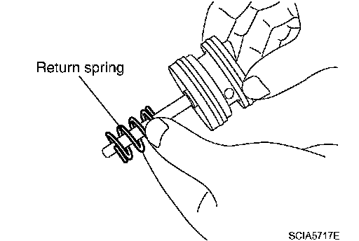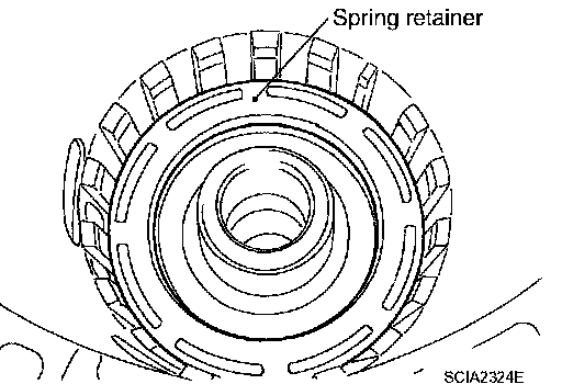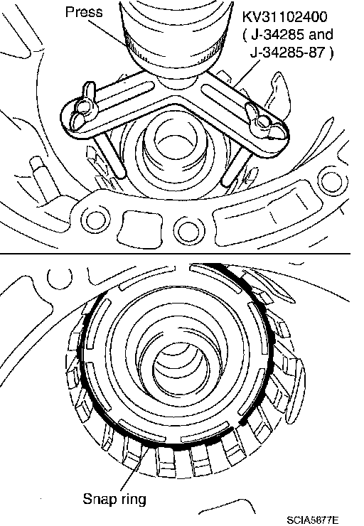 17. Set the SST on spring retainer and install snap ring (fixing spring retainer) in A/T case while compressing return spring.