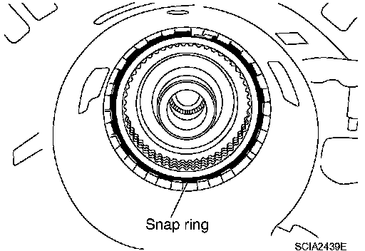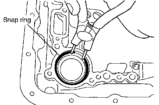 11. Using a pair of snap ring pliers, install snap ring to A/T case.