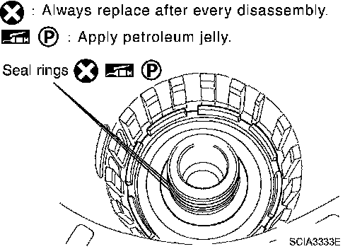 1. As shown in the figure, use a drift [22 mm (0.87 inch) dia. commercial service tool] to drive manual shaft oil seals into the A/T case until it is flush.