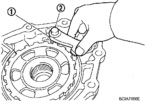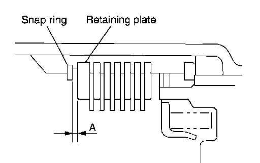 22. Measure clearance between retaining plate and snap ring. If not within specified clearance, select proper retaining plate.