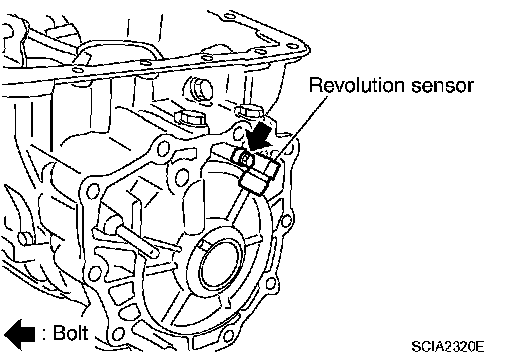 24. Install revolution sensor to A/T case. Tighten revolution sensor bolt to the specified torque. Refer to "Components".