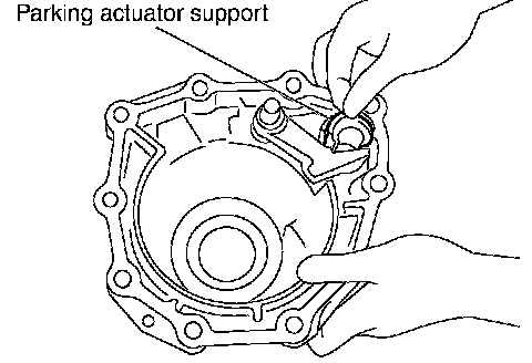 iv. Install parking actuator support from rear extension (2WD models) or adapter case (AWD models).