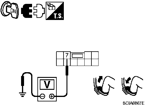 4. Check voltage between A/T device harness connector M133 terminal 7 and ground.
