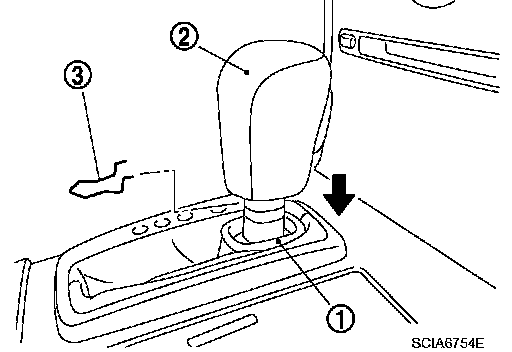 3. Remove knob cover (1) below selector lever downward.