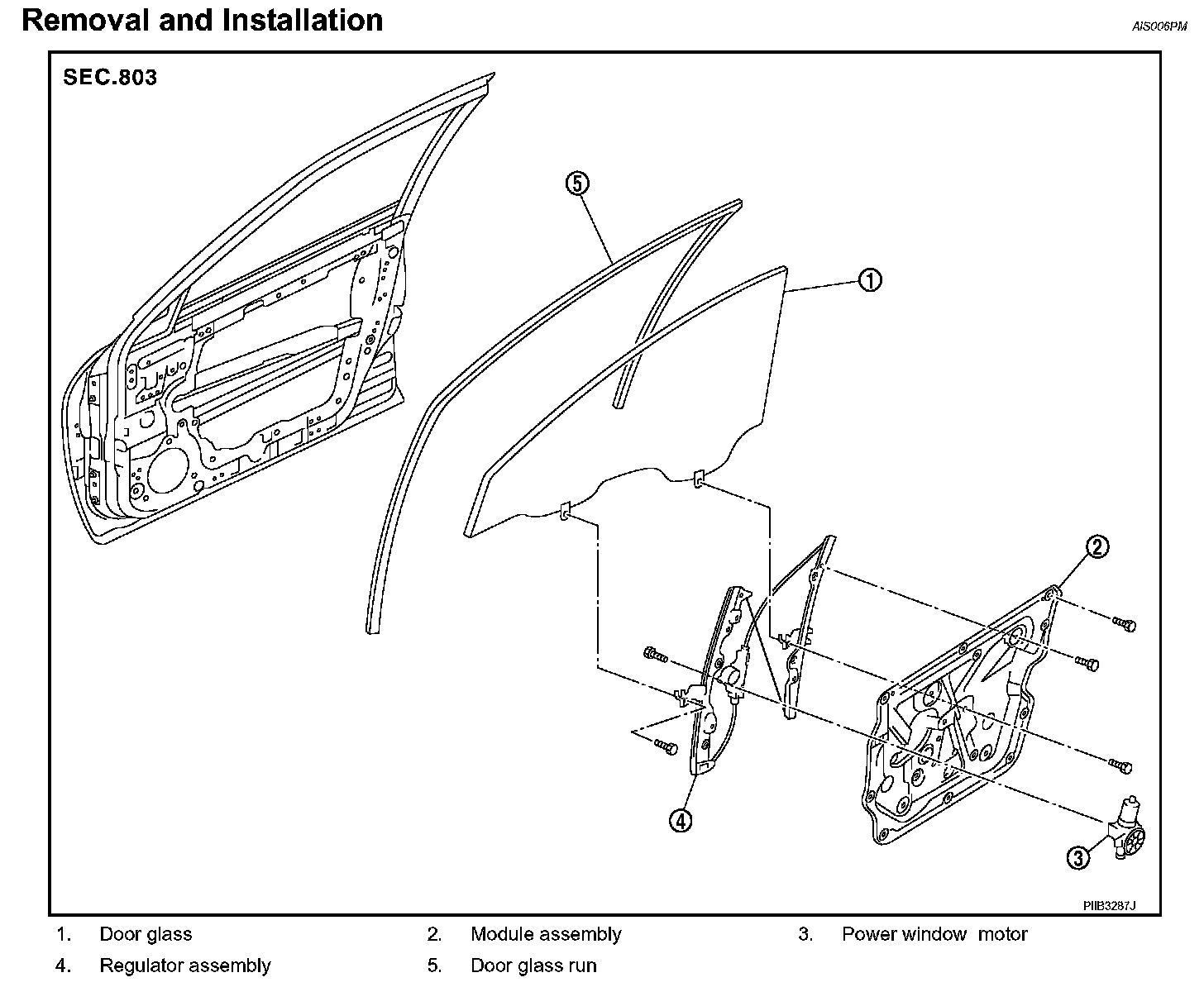 FRONT DOOR GLASS AND REGULATORRemoval and Installation