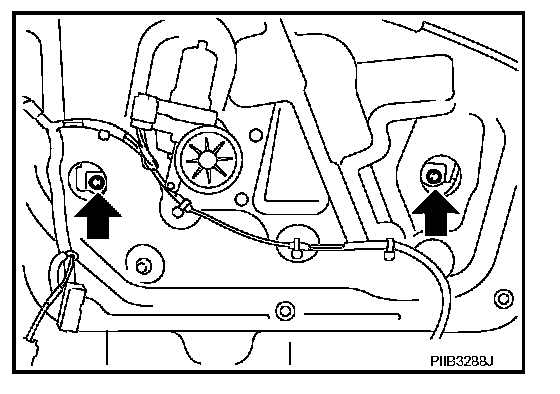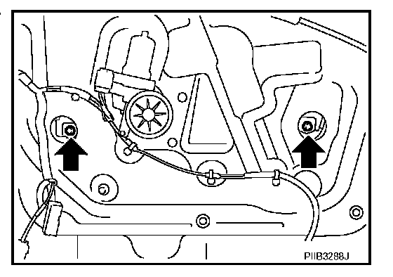 2. Operate the power window main switch to raise/lower the door window until the glass mounting bolts can be seen.