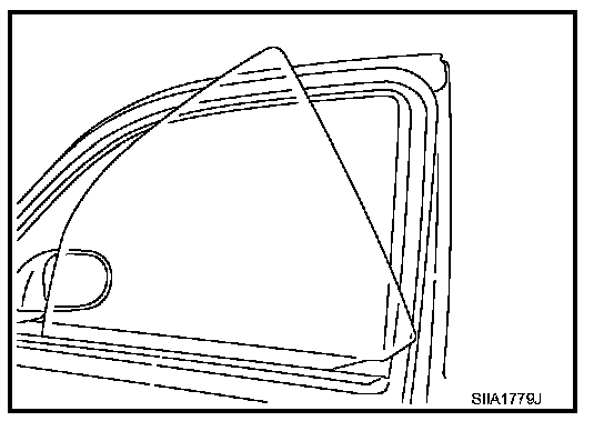 5. While holding the door glass, raise it at the rear end to pull the glass out of the sash toward the inside of the door.