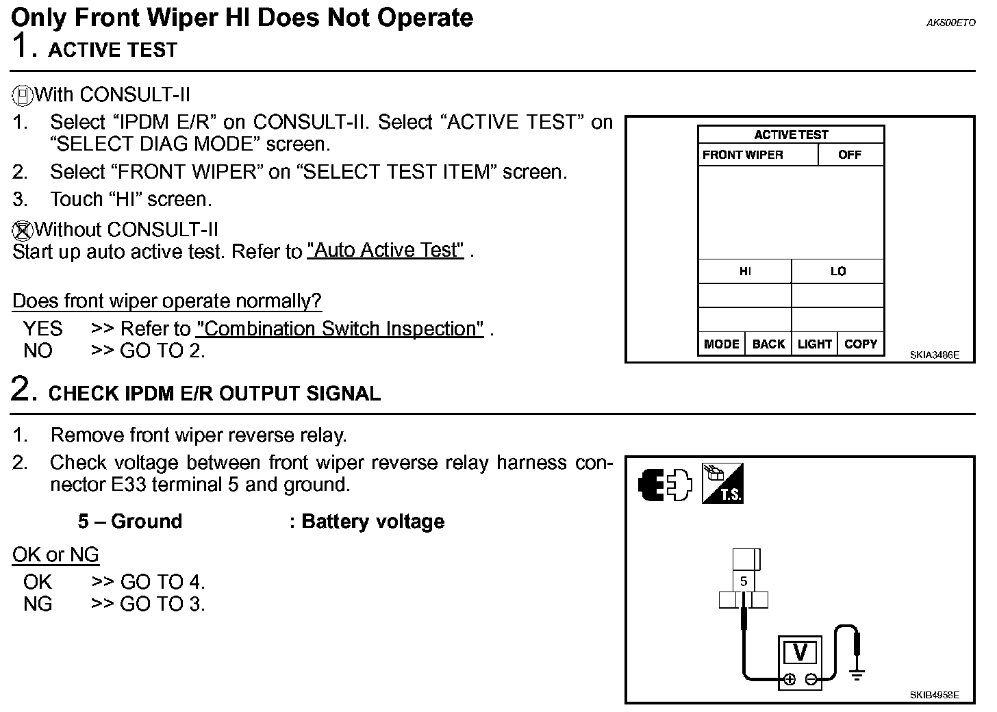 Only Front Wiper HI Does Not Operate (Steps 1 - 2):