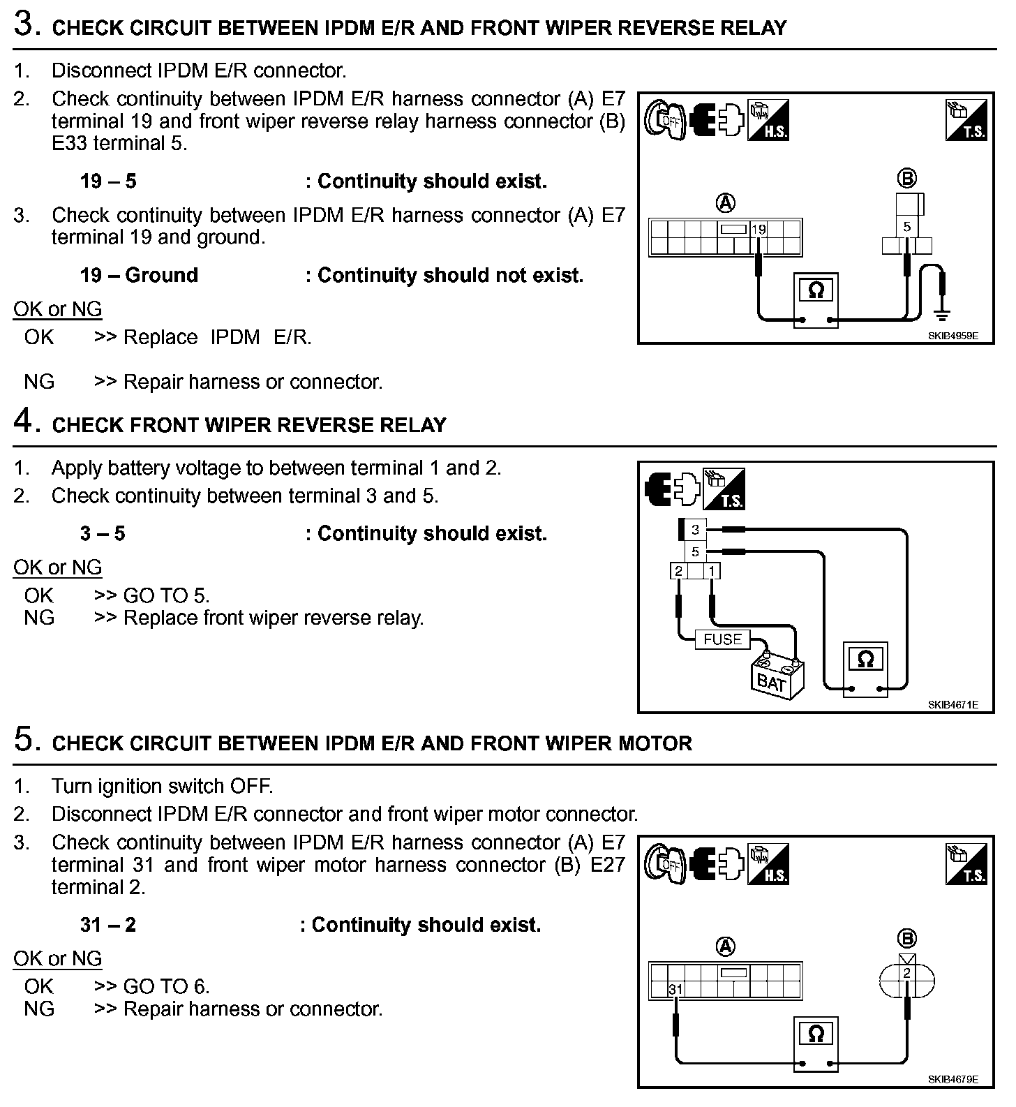 Only Front Wiper HI Does Not Operate (Steps 3 - 5):