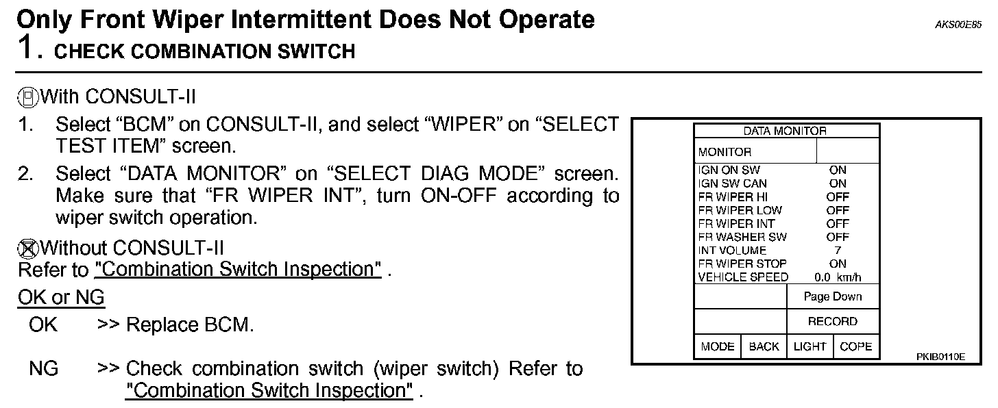 Only Front Wiper Intermittent Does Not Operate: