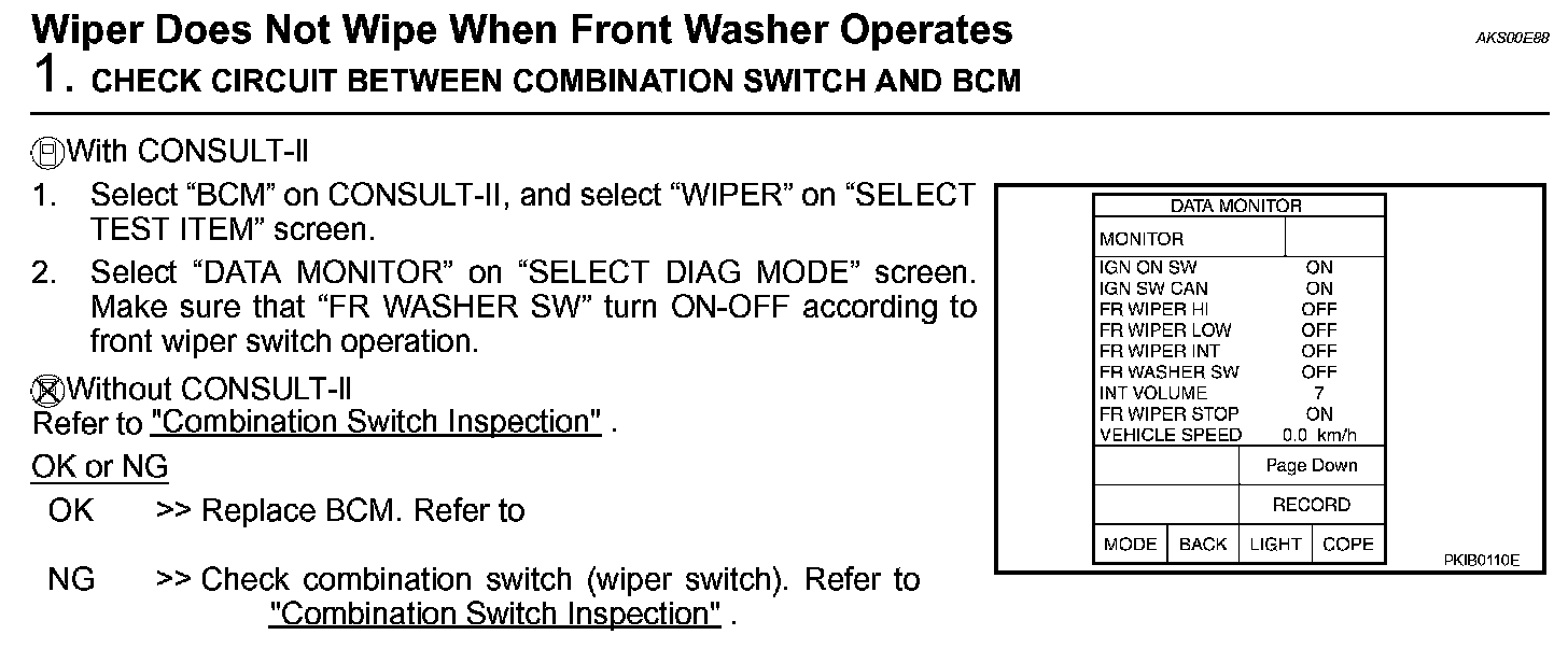 Wiper Does Not Wipe When Front Washer Operates