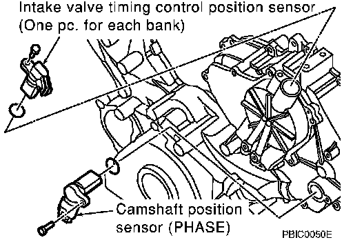 3. If necessary, remove intake valve timing control position sensor (right and left) and camshaft position sensor (PHASE) from intake valve timing control cover and front cover.