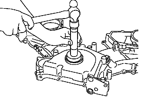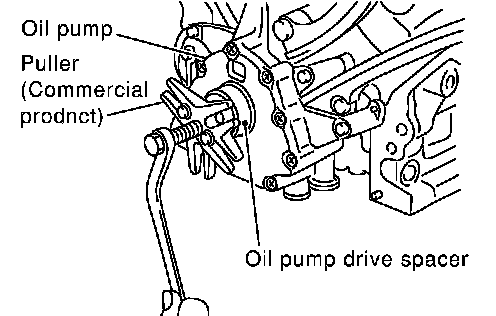 CAUTION: Be careful to avoid interference with the front end of oil pump drive spacer. Such interference may damage front oil seal.