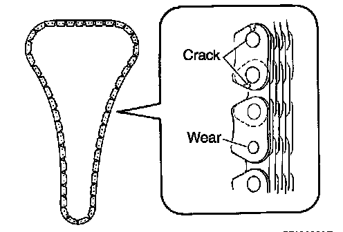 Check for cracks and any excessive wear at link plates. Replace chain if necessary.