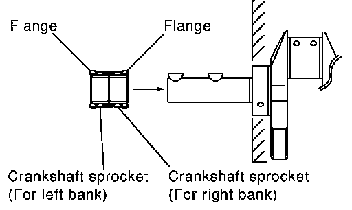 ^ Install each crankshaft sprocket so that its flange side (the larger diameter side without teeth) faces in the direction shown in figure.