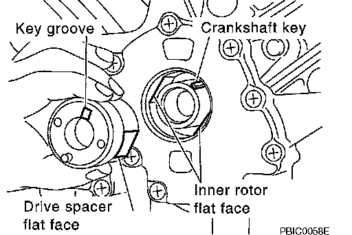 a. Insert oil pump drive spacer according to the directions of crankshaft key and the two flat surfaces of oil pump inner rotor.