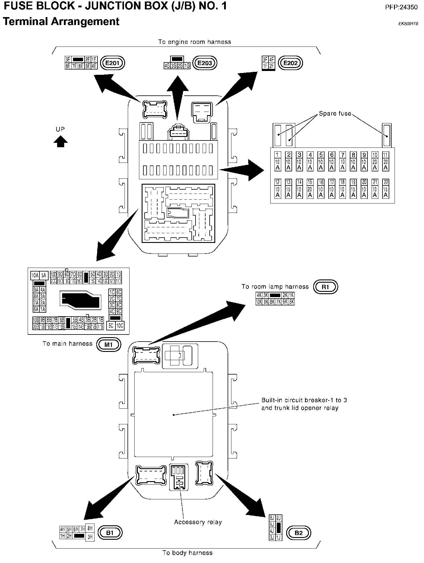 Fuse Block-Junction Box (J/B) No.1 - Terminal Arrangement: