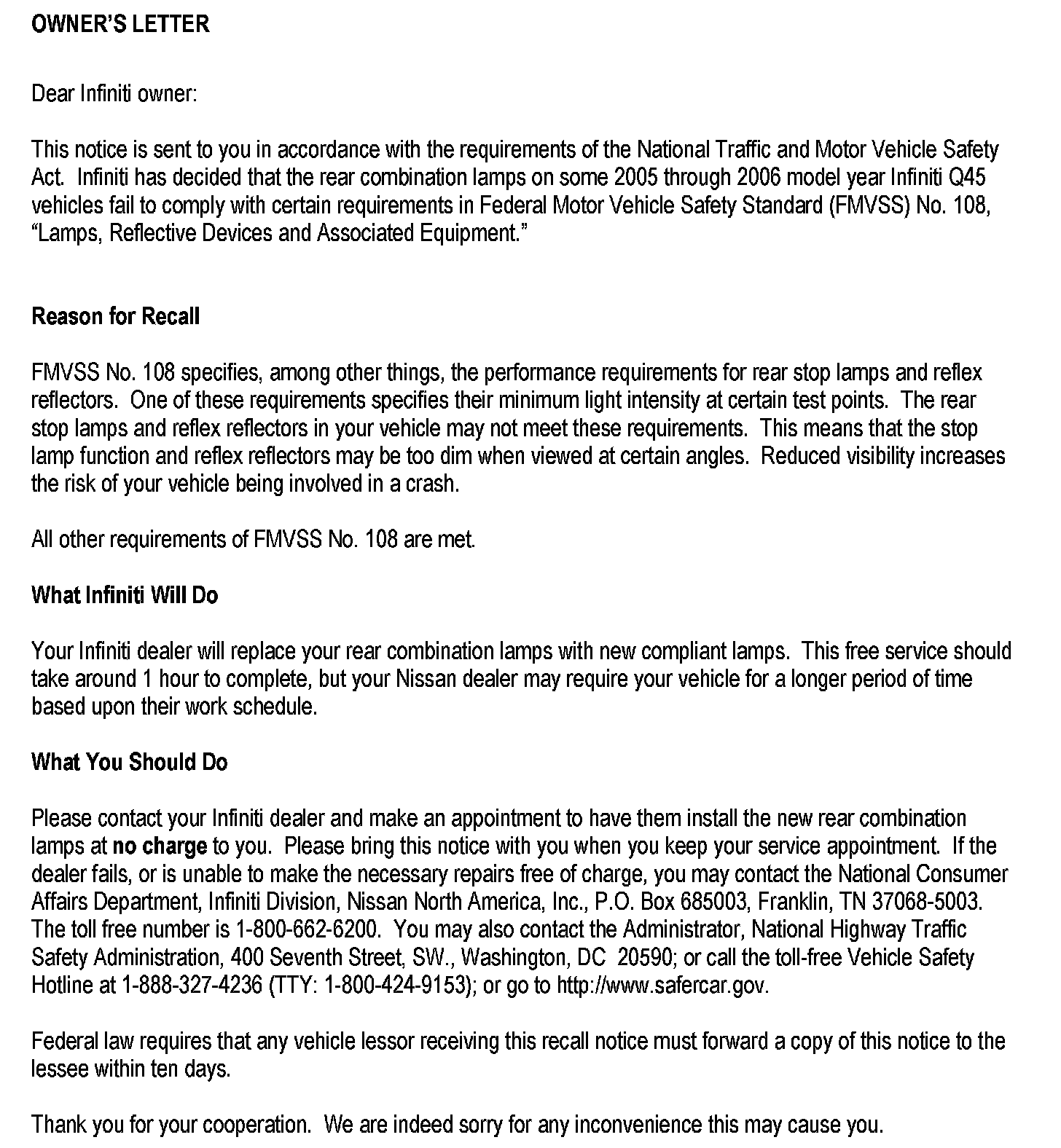 Recall - Rear Combination Lamp Replacement