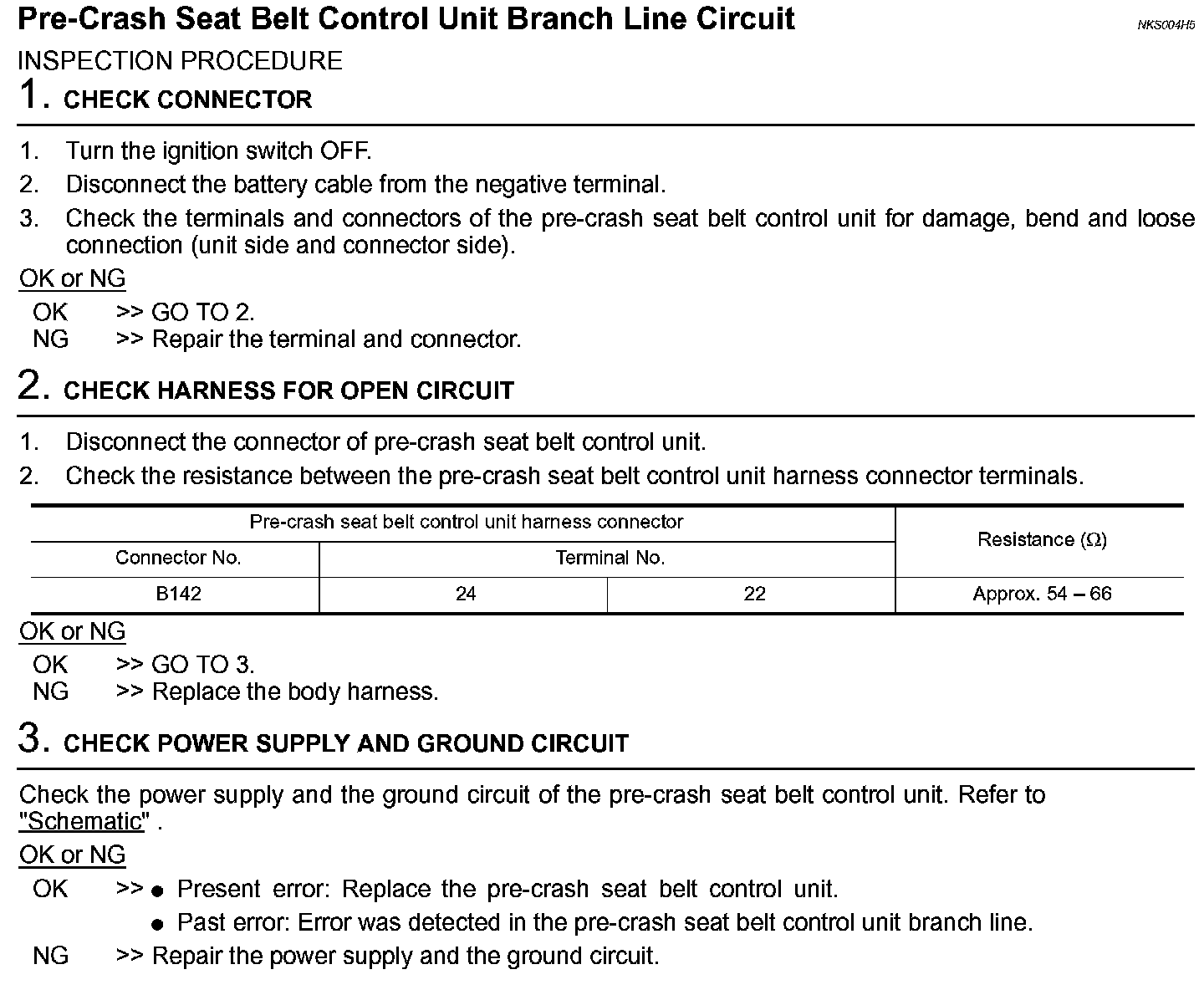 Pre-Crash Seat Belt Control Unit Branch Line Circuit