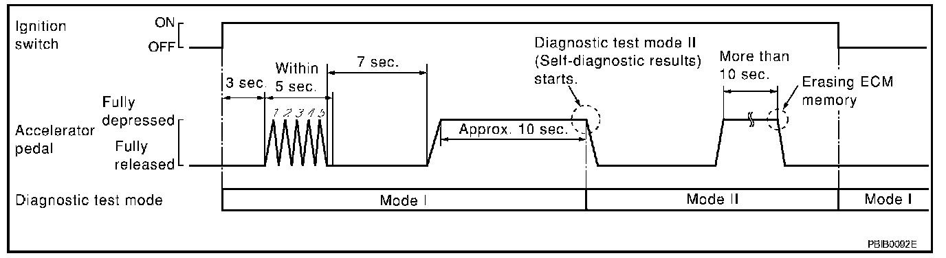 - Always ECM returns to Diagnostic Test Mode I after ignition switch is turned OFF.