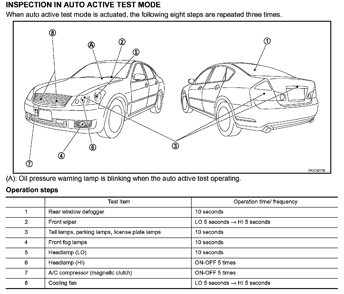 5. When auto active test mode is actuated, horn chirps once. Oil pressure warning lamp starts blinking.