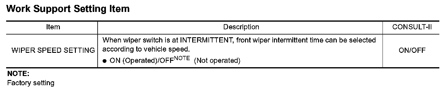 3. Touch "WIPER SPEED SETTING" on "SELECT WORK ITEM" screen.
