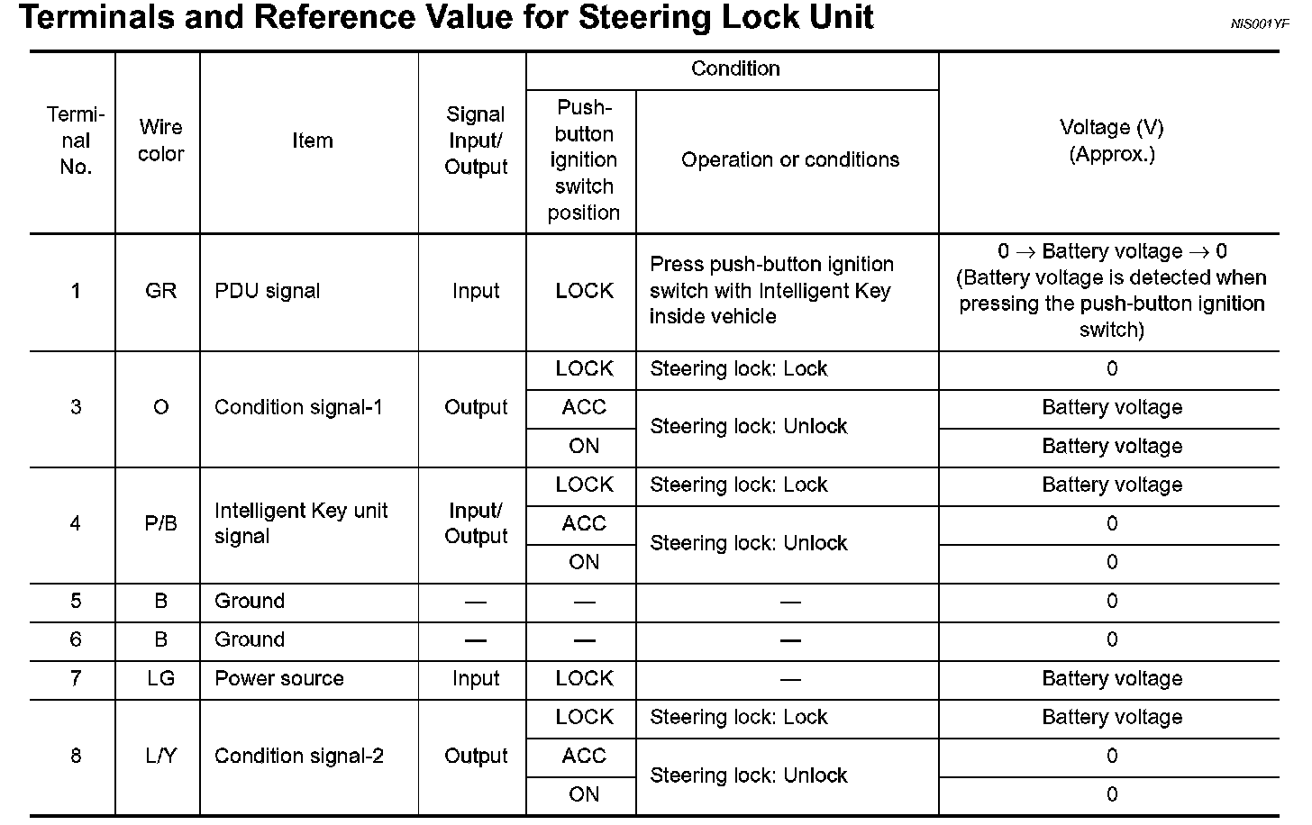 Terminals And Reference Value For Steering Lock Unit: