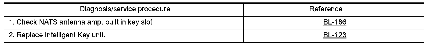 Trouble Diagnosis Symptom Chart 3When performing the push-button ignition switch operation when the Intelligent Key is inserted into the key slot, there is the time difference in the power supply position switching (the power supply changes in approximately 3 seconds)
