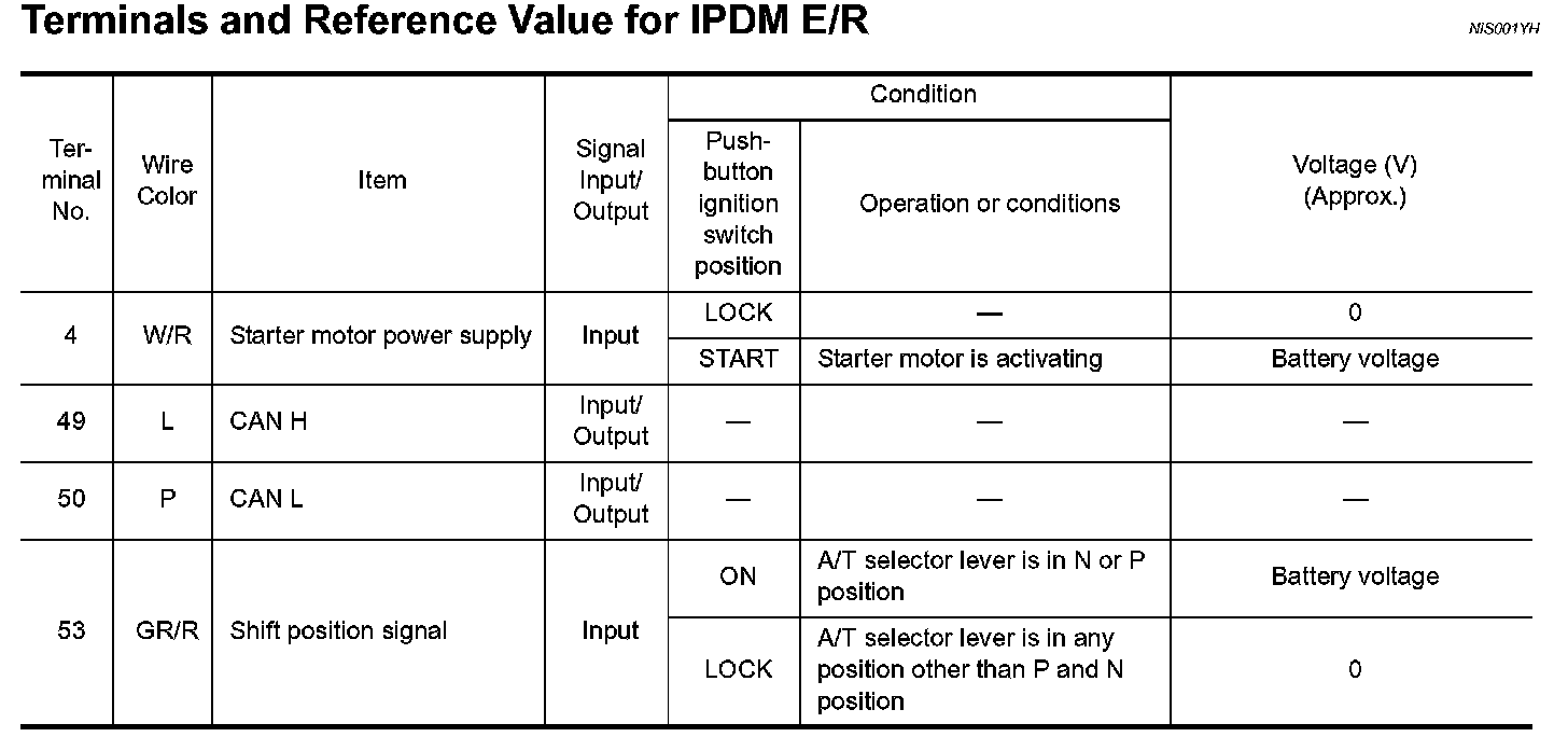 Terminals And Reference Value For IPDM E/R: