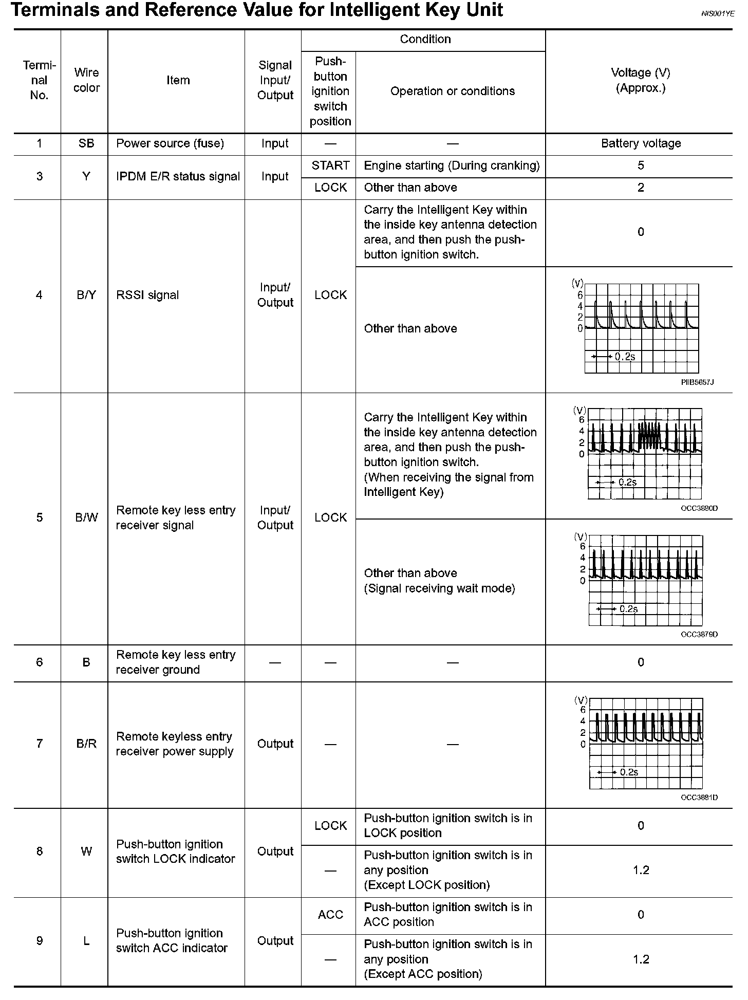 Terminals And Reference Value For Intelligent Key Unit (Part 1):
