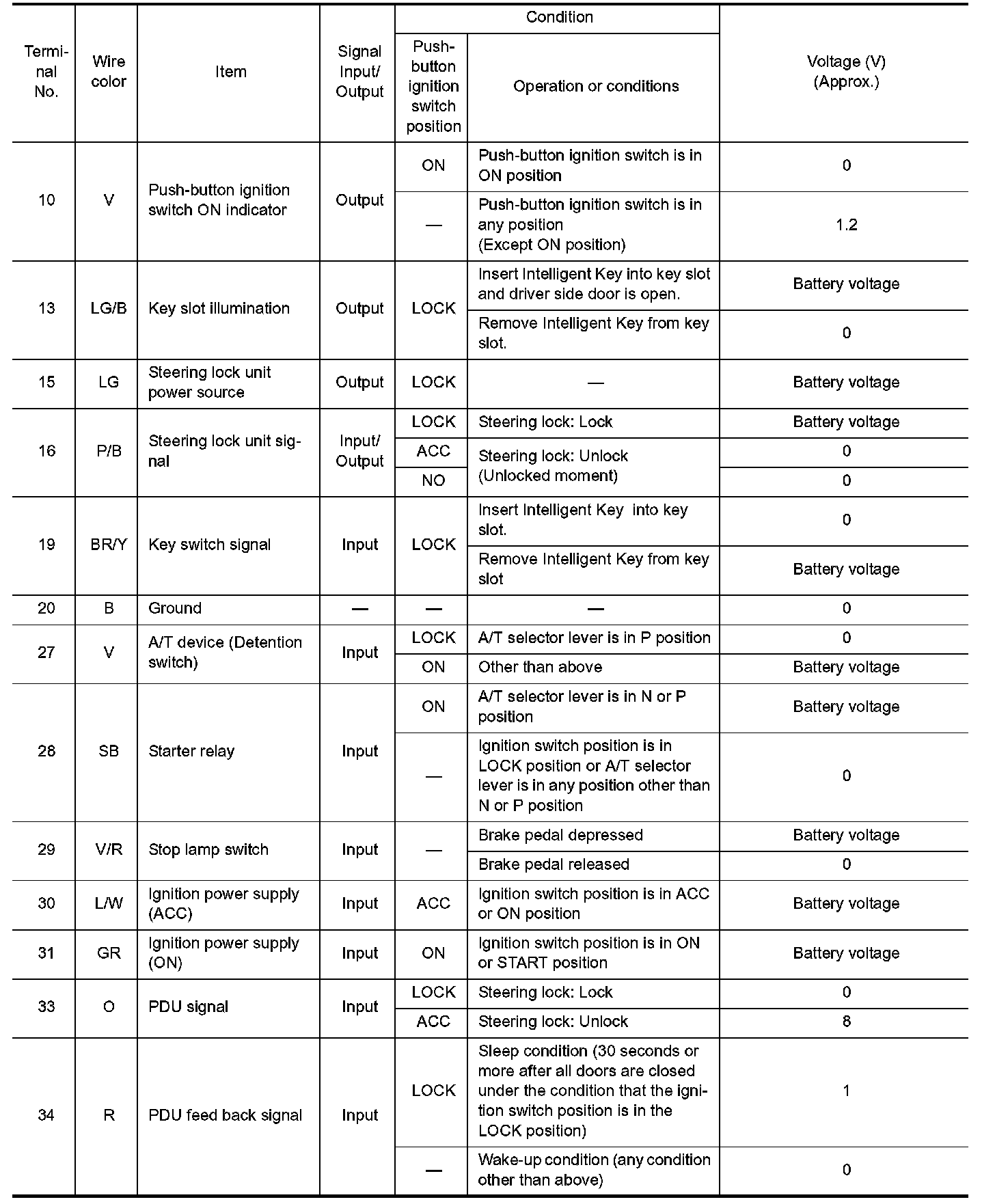 Terminals And Reference Value For Intelligent Key Unit (Part 4):