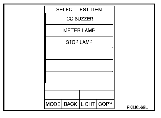 2. Touch any of "ICC BUZZER", "METER LAMP" and "STOP LAMP" on selection screen.