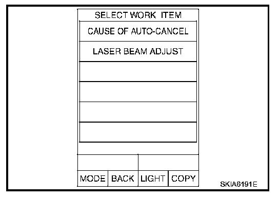 2. Touch "CAUSE OF AUTO-CANCEL" on the "SELECT WORK ITEM" screen.
