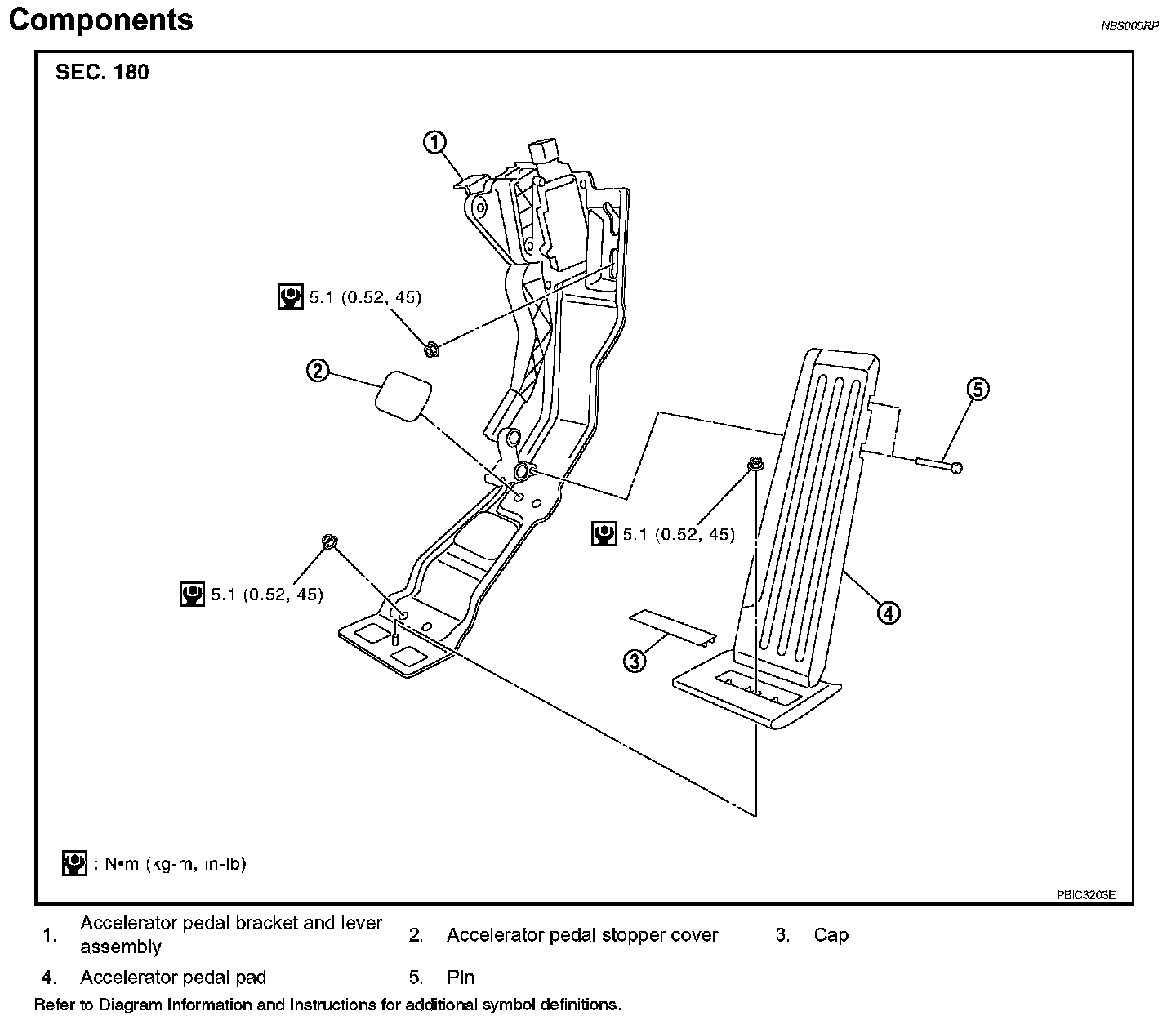 - Make sure accelerator pedal moves smoothly within the whole operation range when it is fully depressed and released.