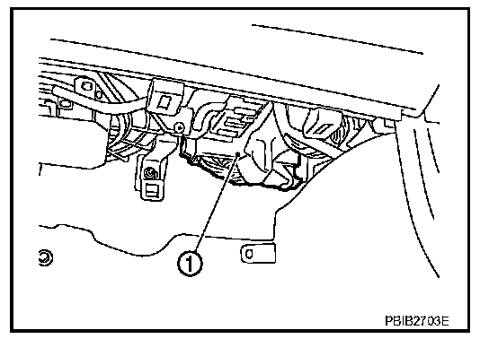 1. ECM (1) is located behind the passenger side instrument lower panel. For this inspection, remove passenger side instrument lower panel.