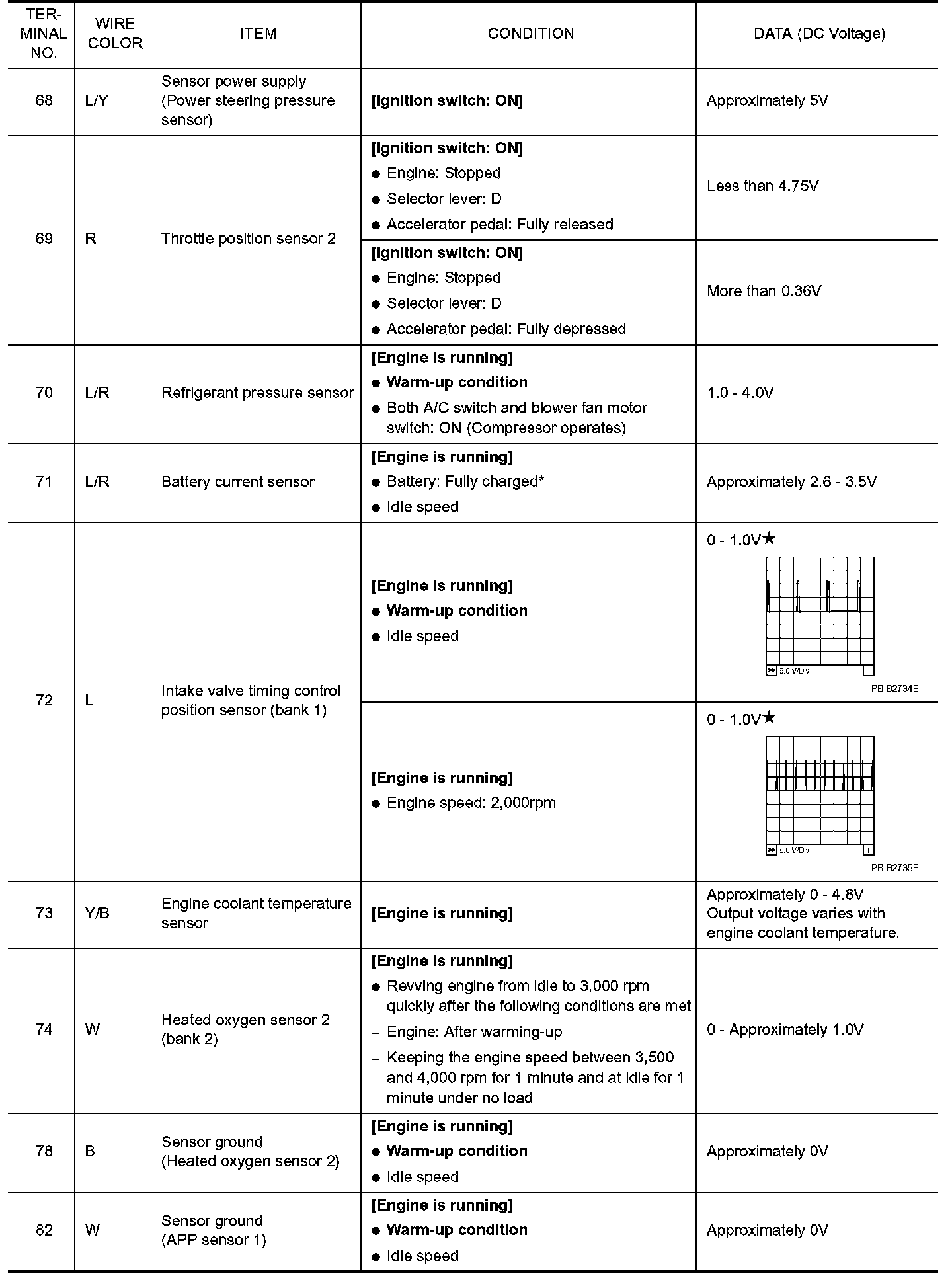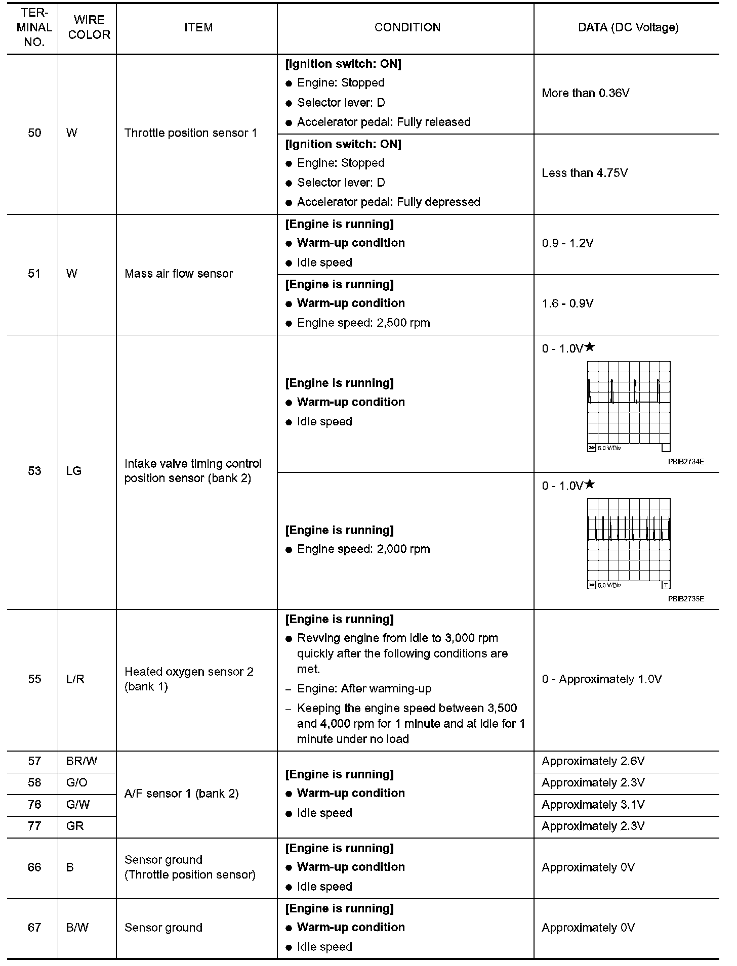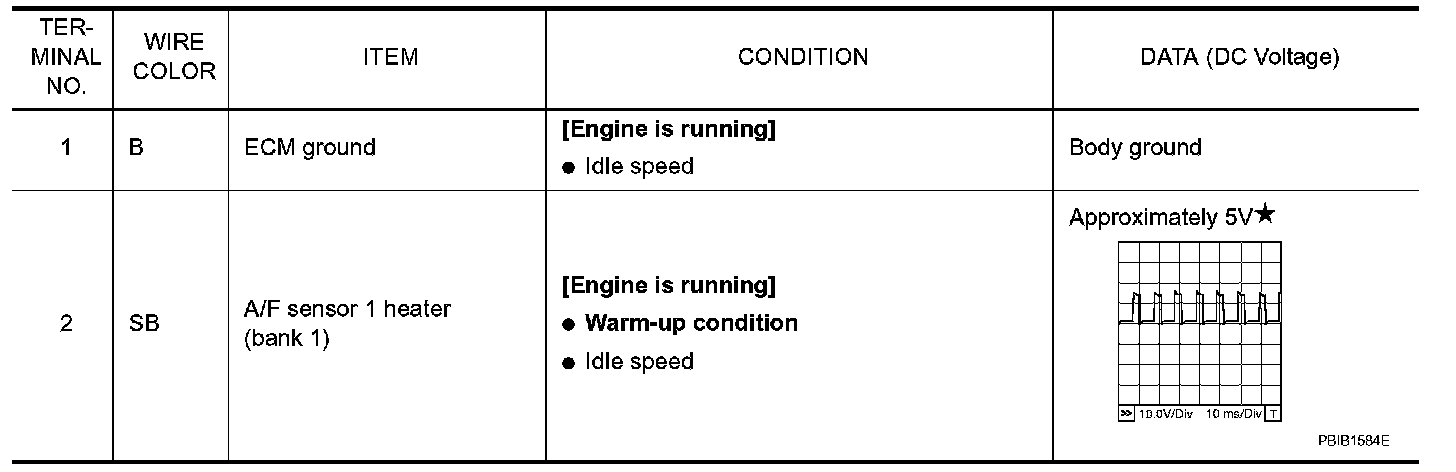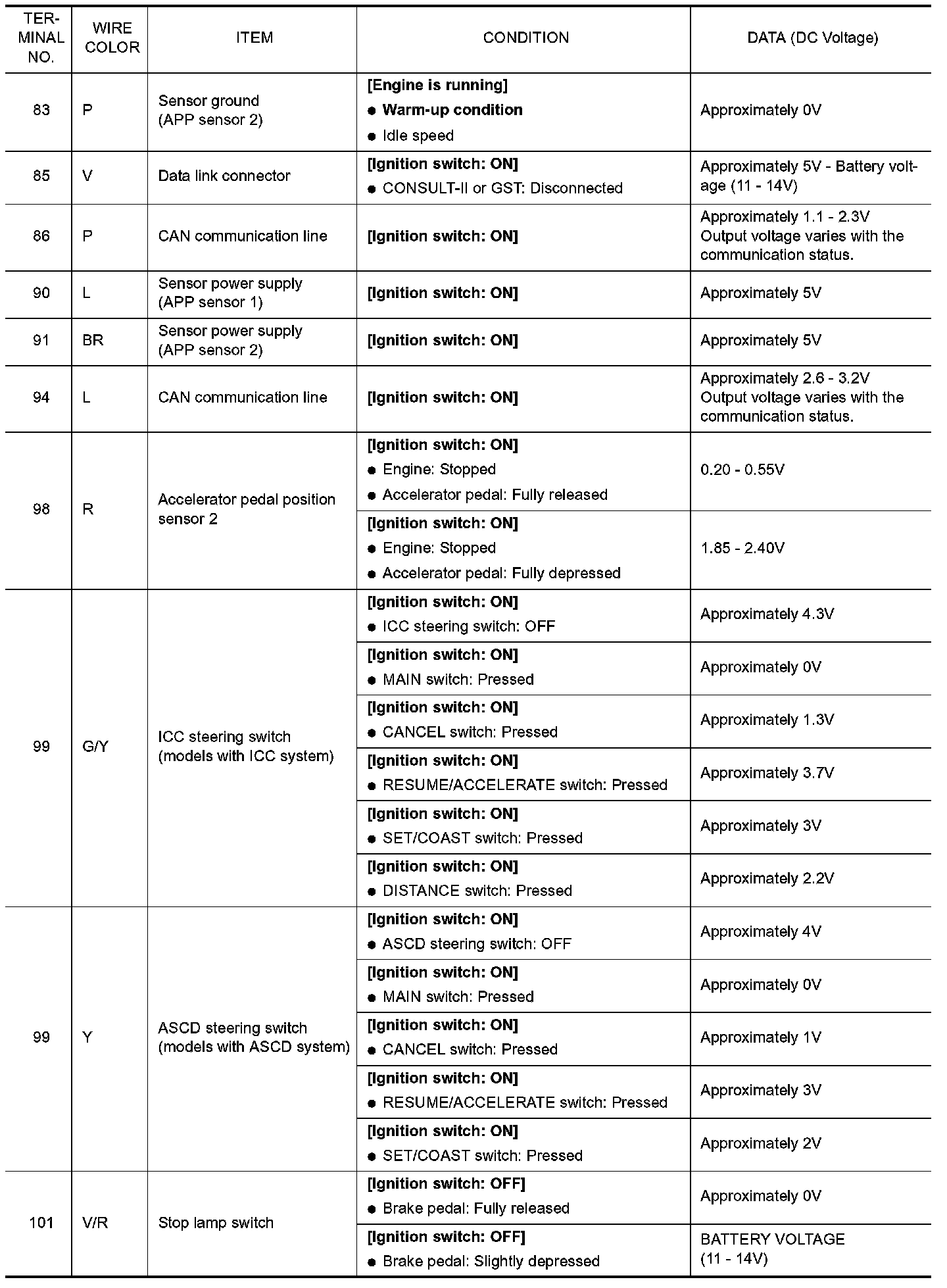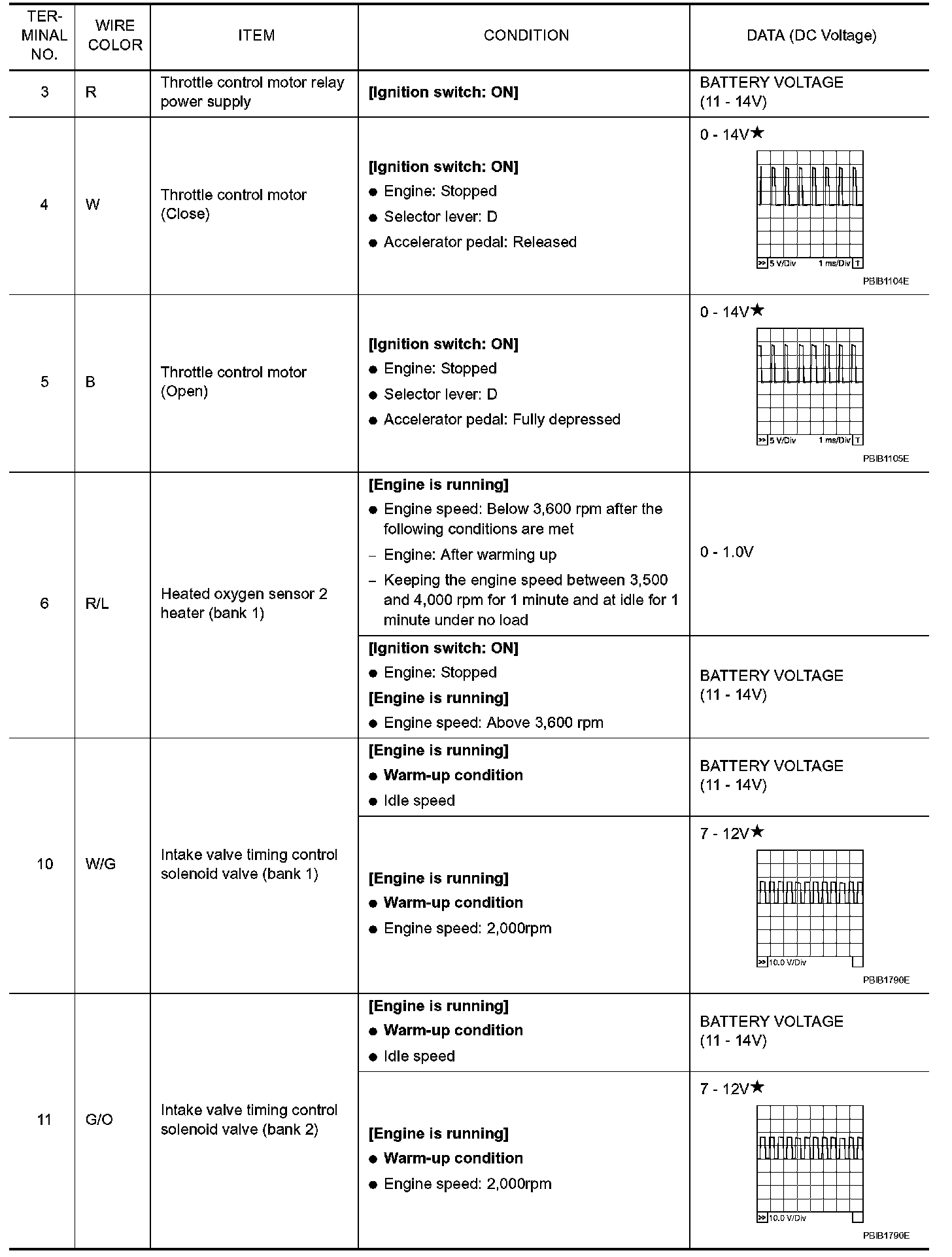 Specification data are reference values and are measured between each terminal and ground. Pulse signal is measured by CONSULT-II.