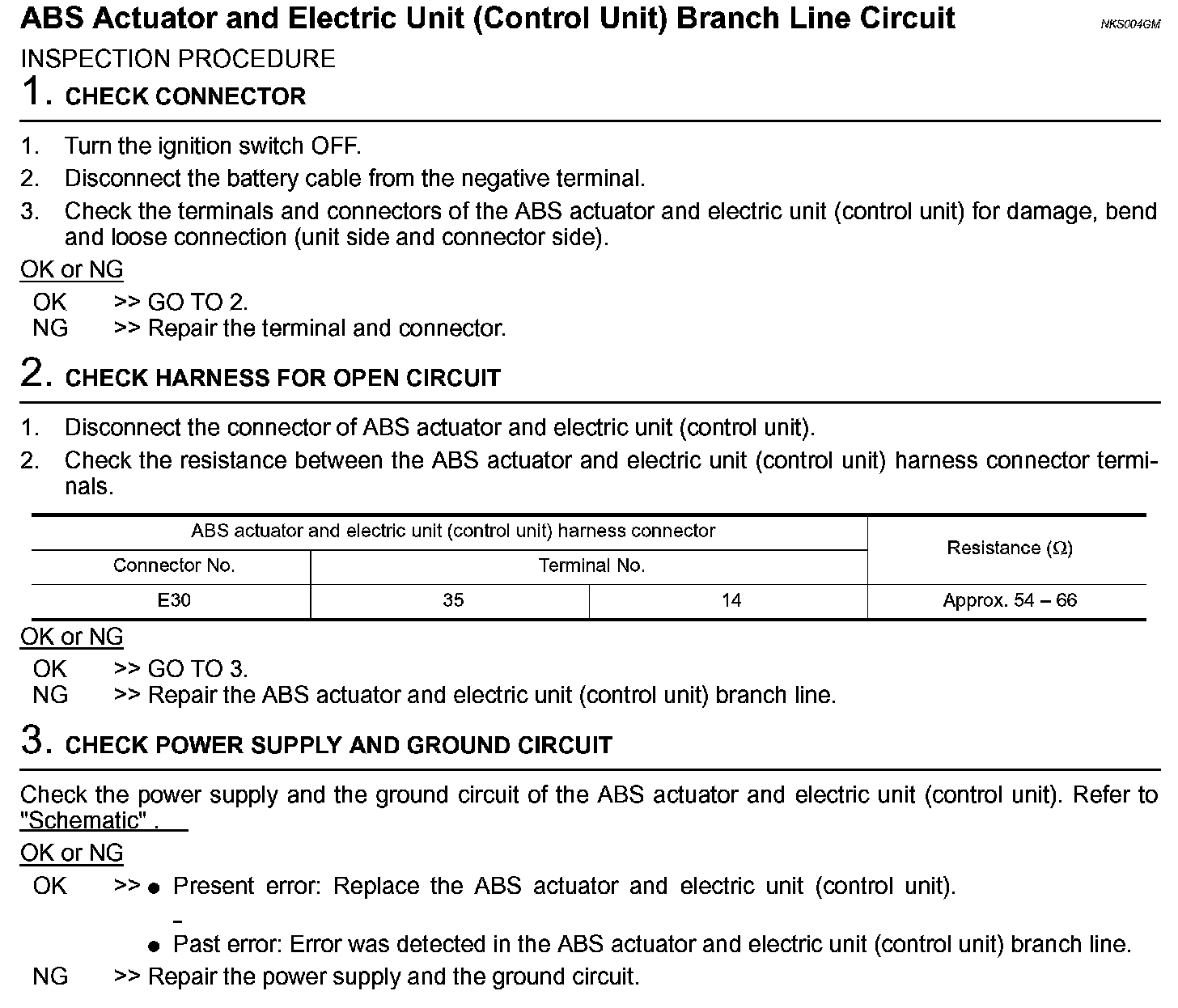 ABS Actuator and Electric Unit (Control Unit) Branch Line Circuit