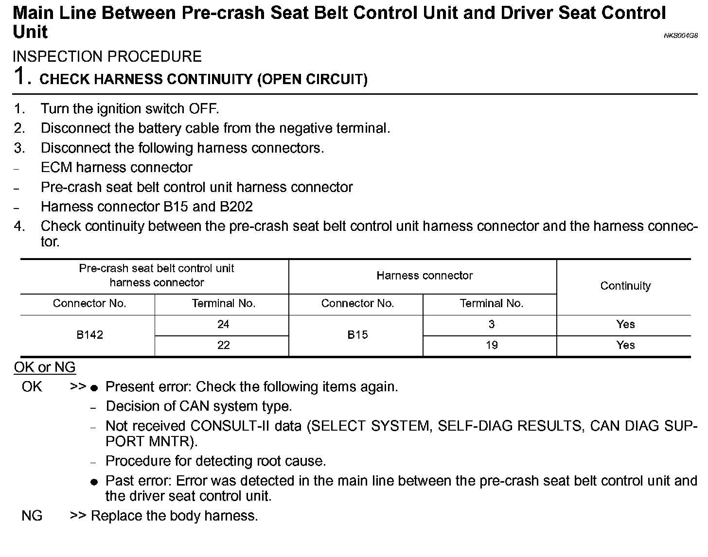 Main Line Between Pre-Crash Seat Belt Control Unit and Driver Seat Control Unit