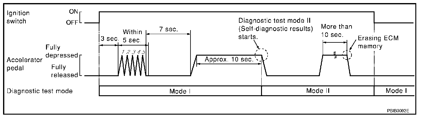 1. Set ECM in Diagnostic Test Mode II (Self-diagnostic results). Refer to "How to Set Diagnostic Test Mode II (Self-diagnostic Results)".