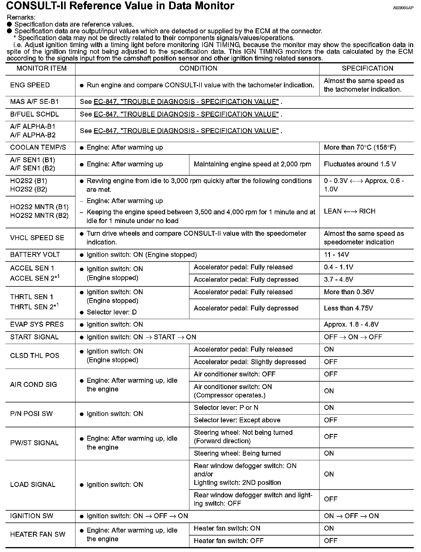 CONSULT-II Reference Value In Data Monitor