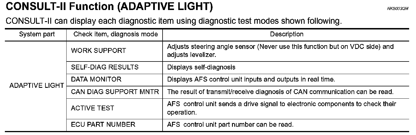 CONSULT-II Function (Adaptive Light)