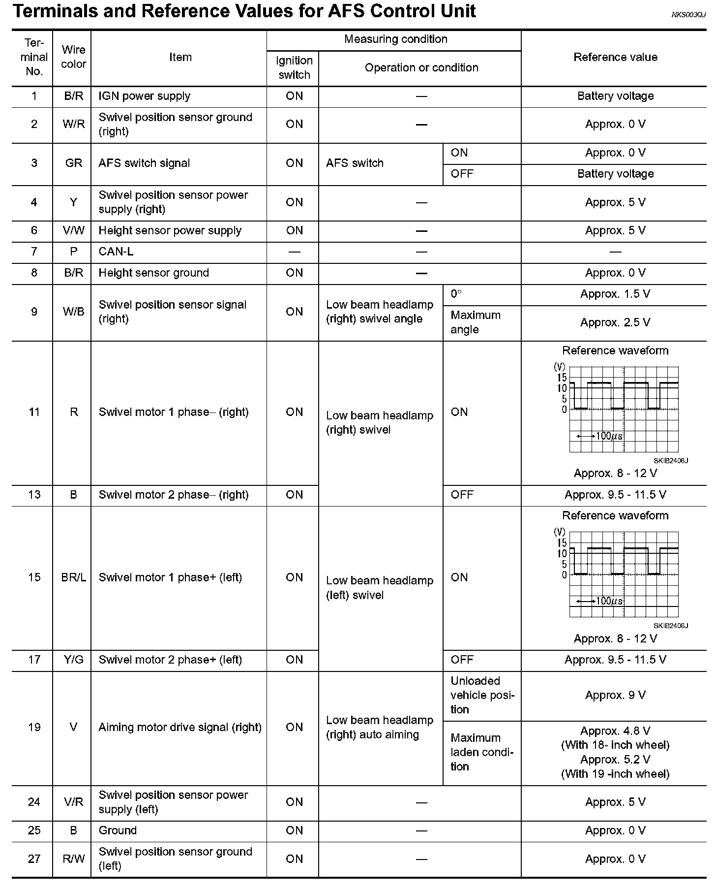 Terminals And Reference Values For AFS Control Unit (Part 1):