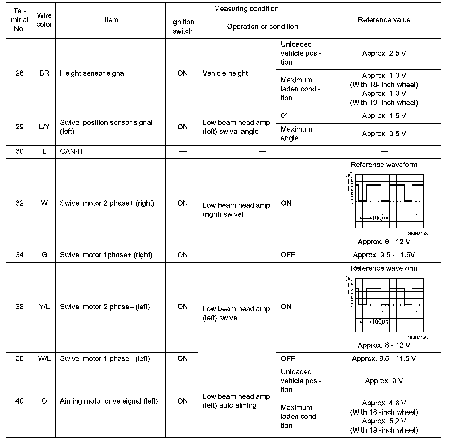 Terminals And Reference Values For AFS Control Unit (Part 2):