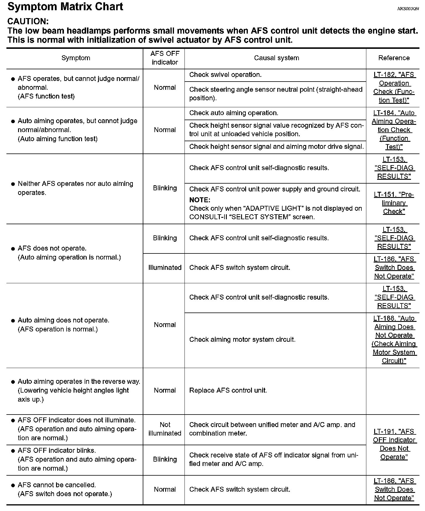 Symptom Matrix Chart: