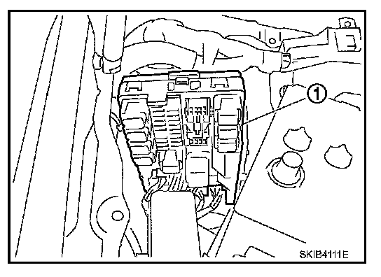 5. Remove harness connector from IPDM E/R (1) and remove IPDM E/R (1).