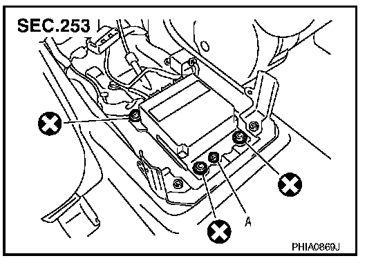 - Remove the center console assembly. Refer to "INSTRUMENT PANEL ASSEMBLY".