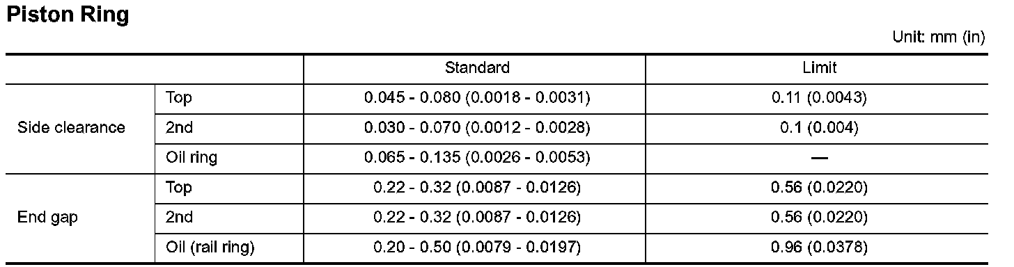 Wear limit: 0.2 mm (0.008 in)