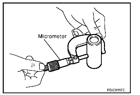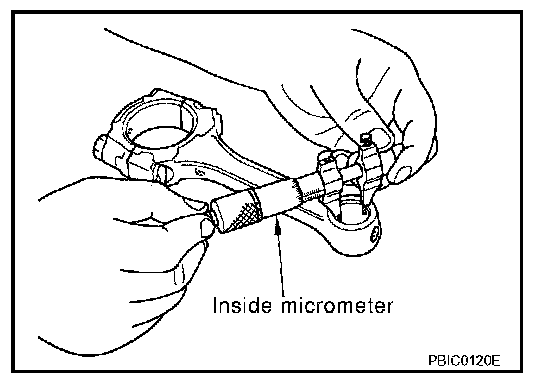 Measure the inner diameter of connecting rod bushing with inside micrometer.
