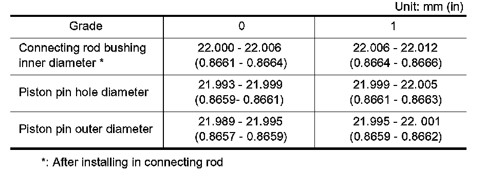 ^ Piston pin (piston pin hole) grade is provided only for the parts installed at the plant. For service parts, no piston pin grades can be selected. (Only "0" grade is available.)