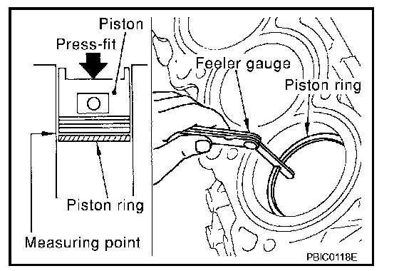 ^ If the measured value exceeds the limit, replace piston ring, and measure again. If it still exceeds the limit, re-bore cylinder and use oversize piston and piston rings.